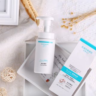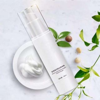 2、擠黃豆大小的潔面著哩在手心,揉搓起泡。
